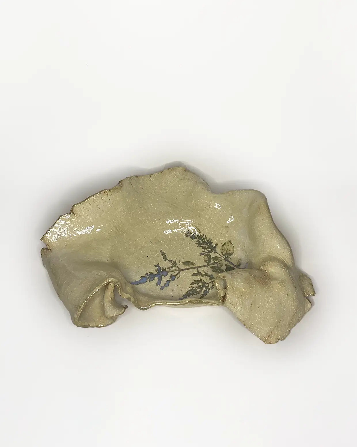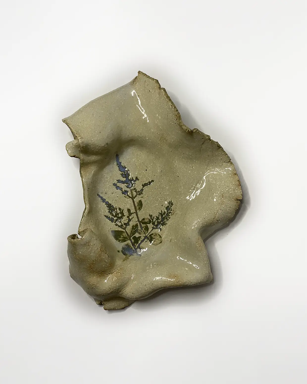Pieza de gran tamaño con decoración cardial en su parte externa 47/37/23cm en gres de alta temperatura 1280 grados, esmaltada en tonos verde turquesa satinado en su interior, La cerámica cardial es característica de uno de los primeros estadios del Neolítico de la cuenca mediterránea, durante los VI y V milenio a.C.