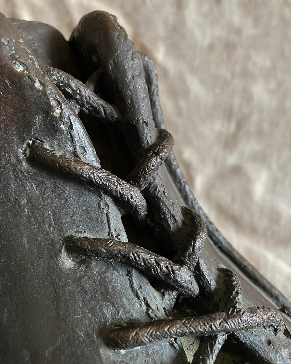 Pieza de gran tamaño con decoración cardial en su parte externa 47/37/23cm en gres de alta temperatura 1280 grados, esmaltada en tonos verde turquesa satinado en su interior, La cerámica cardial es característica de uno de los primeros estadios del Neolítico de la cuenca mediterránea, durante los VI y V milenio a.C.